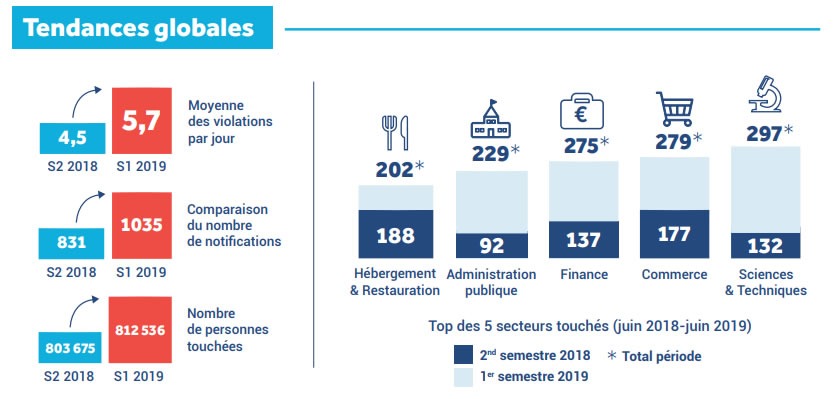 Les premières observations de la CNIl permettent d’affirmer qu’aucun secteur n’est à l’abri : finance, commerce, médias, communication, industrie… la réalité des fuites de données suit de près celle des cyber menaces.